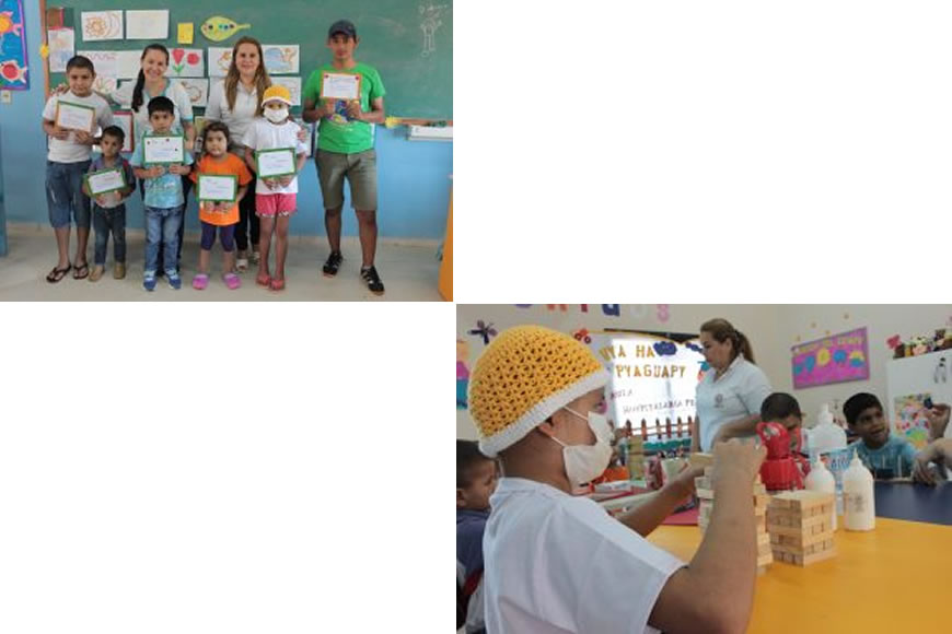 Se trata de 30 ninos del primero y segundo ciclo, inscriptos en colegios aledanos o en sus comunidades, pero con la oportunidad de cumplir con lo establecido por el MEC, dentro de las salas de internacion o en las aulas hospitalarias.