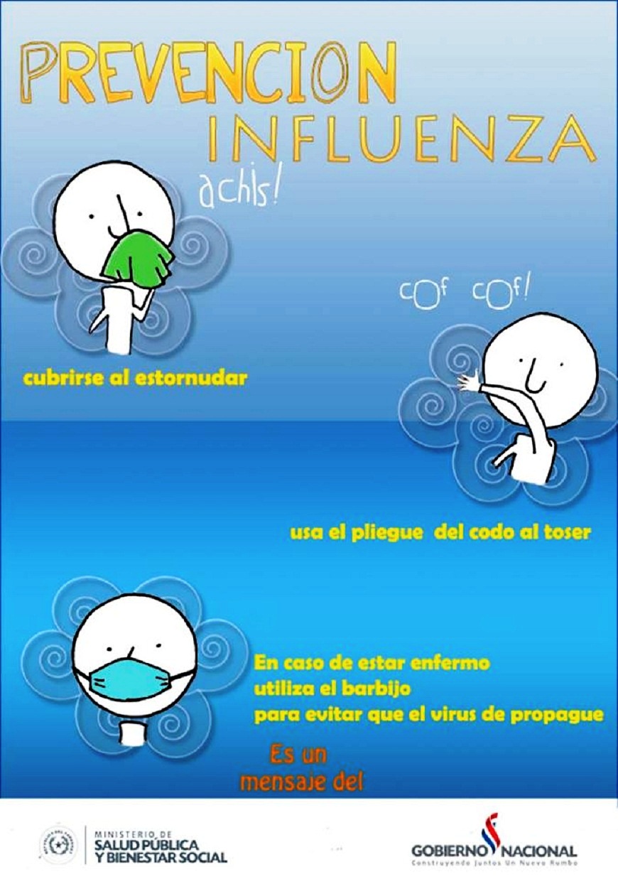 Con el ingreso del frio polar, se hace necesario reforzar las medidas de prevencion de enfermedades respiratorias. Ademas de abrigarse bien y evitar, en lo posible, exponerse a la intemperie, la cartera sanitaria recuerda la importancia de: • Hacer uso de la etiqueta de la tos: cubrirse con la flexura del codo boca y nariz al momento de toser y estornudar, nunca con la mano. • Realizar el lavado frecuente de las manos con agua y jabon, sobre todo despues de entrar en contacto con secreciones (saliva y moco), y al salir del bano. • Higienizar (con lavandina) las superficies de uso comun: telefono, teclado, mesas, picaportes, entre otros. La gripe o influenza es una enfermedad altamente transmisible. Se propaga de persona a persona a traves de secreciones (moco y saliva), que son expulsadas al hablar, toser o estornudar. Es importante tener en cuenta que el virus de la influenza puede sobrevivir hasta 5 minutos en las manos, de 24 a 48 horas en superficies duras, y de 8 a 12 horas en papeles, telas y otras fibras, por lo que las practicas higienicas son claves para frenar la dispersion de la enfermedad. Por otra parte, se aconseja incrementar las defensas con el consumo diario de frutas y verduras. Enfatizar, principalmente, la ingesta de alimentos ricos en vitamina C, entre los que figura zanahoria, naranja, limon, pomelo y otros citricos, de esta manera el cuerpo estara preparado para hacerle frente a la gripe. Igualmente, mantenerse hidratado bebiendo al menos 2 litros de agua por dia y dormir 8 horas para mantener en condiciones al organismo. En caso de contar con sintomas respiratorios, es recomendable reposar y acudir a la consulta medica, evitar concurrir a lugares de aglomeracion (estadios, shoppings, cines, supermercados), no dar besos, tampoco compartir mate, terere ni cubiertos, y no automedicarse.