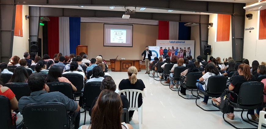Unos 285 profesionales de la salud, entre ellos, quimicos farmaceuticos, tecnicos de farmacia y bioquimicos, del sector publico y privado, participaron de un taller de actualizacion en diabetes. La actividad se desarrollo en dos jornadas, en el salon auditorio del Ministerio de Salud y estuvo a cargo de tecnicos del Programa Nacional de Diabetes. Diagnostico laboratorial, importancia del test de tolerancia oral a la glucosa, el papel de la hemoglobina glicada en el tratamiento, tratamiento farmacologico, papel del quimico farmaceutico , nuevas drogas y tratamientos, algunos de los temas abordados durante el taller de actualizacion, a los efectos de brindar una mayor cobertura y precision en el diagnostico y tratamiento a personas con diabetes. El objetivo general del Programa Nacional de Diabetes es prevenir el desarrollo de la Diabetes Mellitus (DM) en individuos y comunidades susceptibles. Otro de los ejes centrales de este Programa apunta a mejorar el acceso al tratamiento y asi lograr un buen control metabolico en las personas que ya presentan Diabetes y prevenir sus complicaciones a largo plazo. De esta manera se logra disminuir la morbimortalidad y los costos de la enfermedad, jerarquizando la atencion en el primer nivel de atencion, con mejor y mayor cobertura.