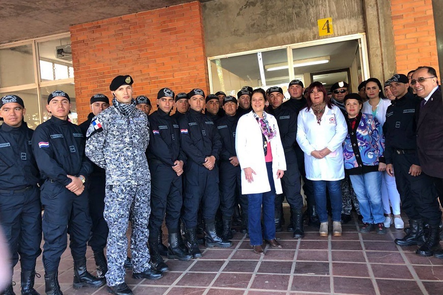 Los agentes del Grupo Lince, de la Policia Nacional, se presentaron el 1 de agosto pasado en el Departamento de Medicina Transfusional (Banco de Sangre) del Instituto Nacional del Cancer (INCAN), dependiente del Ministerio de Salud, para brindar esta contribucion a la salud de los pacientes del hospital especializado. Los mismos fueron recibidos por la Medica-Jefe de la dependencia, Dra. Milenne Centurion, y por el equipo de profesionales de salud del servicio, quienes agradecieron el gesto solidario del grupo, dando el ejemplo de esta manera a toda la ciudadania. La donacion voluntaria de sangre es un acto de total generosidad y altruismo, siendo una accion desinteresada y muy benefica para todos. El proceso de donacion sanguinea dura de 20 a 30 minutos, tiempo que contempla la toma de datos del donante hasta la culminacion del procedimiento de extraccion. Los hombres pueden donar sangre cada tres meses hasta 4 veces al ano; mientras que las mujeres pueden hacerlo hasta 3 veces al ano, cada cuatro meses. Cada volumen de sangre extraido puede salvar en promedio 3 vidas. Para donar sangre solo se requiere estar en buen estado de salud, tener entre 18 a 60 anos de edad y contar con un peso a partir de 55 kilos. No hay que estar en ayunas y se debe portar la cedula de identidad. NO pueden donar sangre: embarazadas y mujeres en periodo de lactancia, personas con gripe o resfrio, con adiccion a las drogas o que padezcan de enfermedades cronicas o infectocontagiosas (hepatitis, VIH y otras de transmision sexual). Vos tambien podes donar cualquier dia, en este hospital o tambien en el CENSSA, sito en Avda. Gral. Santos c/ Herminio Gimenez (Hospital de Trauma), de lunes a viernes, de 06:00 a 18:00; y sabado y domingo, de 07:00 a 17:00.