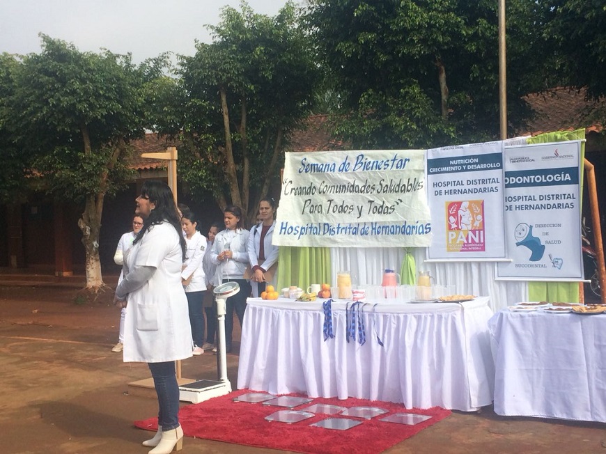 Mas de 300 alumnos de la escuela â€Å“Divina Misericordia†participaron de las actividades de clausura de la Semana del Bienestar en compania de funcionarios del hospital distrital de Hernandarias. Con alimentos saludables elaborados a base de soja, juegos que potencian la resistencia fisica y controles rutinarios se dieron por terminadas todas las actividades desarrolladas en el marco de esta conmemoracion.  La Dra. Marta Sosa, directora del hospital comento que la elaboracion de los alimentos de soja se realiza de manera rutinaria, en esta ocasion de forma especial apuntando a la nutricion de los ninos, los alimentos fueron elaborados bajo las directrices de las nutricionistas del servicio y la colaboracion de una de las cocineras. â€Å“Nosotros contamos con la vaca mecanica que es la productora de leche de soja, de esa sacamos el gabazo y la soja, preparamos la leche y el gabazo, y esto es lo que es distribuido entre escolares y funcionarios de la escuelaâ€. Asi tambien los escolares recibieron orientacion sanitaria en cuanto al cuidado de los dientes y la boca, recordando con los odontologos, las tecnicas basicas del cepillado correcto. Nutricionistas, fisioterapeutas y profesores de educacion fisica desarrollaron concursos de correcaminatas, prueba de fuerza con estiramiento de lazo, carrera en bolsas y corrida de los 100 metros. Previo a estas pruebas a todos los participantes les fueron practicados controles de peso y talla. Finalmente se destaca la presencia y el acompanamiento de personal del Departamento de Promocion de la Salud y la colaboracion de alumnos de nutricion de UPE Y UNINORTE, del Colegio Tecnico en Salud â€Å“Don Augusto Roa Bastos†y funcionarios de del area de nutricion, fisioterapia y odontologia.