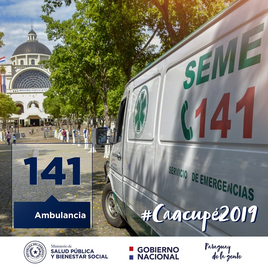 El Servicio de Emergencias Medicas Extrahospitalarias (SEME) es uno de los componentes que conforman el equipo de respuesta del Ministerio de Salud Publica para la festividad de la â€Å“Virgencita Azulâ€. Se recuerda a la ciudadania que el numero habilitado para responder a las llamadas de pedido de ambulancias o coordinacion del sistema de referencia y contra referencia es el 141. La llamada al 141 es gratuita y es importante agendar el numero en el telefono o memorizarlo, para casos de urgencia o emergencia. En el marco del Operativo Caacupe 2019, el Ministerio de Salud dispuso un total de 42 ambulancias, que estaran estrategicamente ubicadas para responder a las urgencias y emergencias. A tener en cuenta En el caso de presenciar un accidente de transito: • No movilizar ni tocar a la persona accidentada. • Desde cualquier tipo de telefono, llamar al 141 (Centro de Operaciones de SEME). Un medico regulador orientara sobre el manejo del caso, hasta la llegada de la ambulancia.