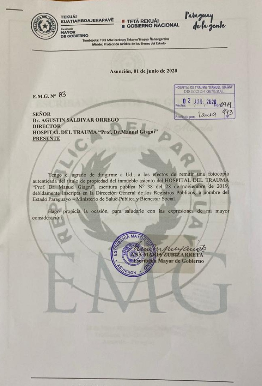 Con esto se logran humanizar sectores del nosocomio como el albergue, el area de fisioterapia, cocina, comedor, y se conseguira tener un deposito en base a las necesidades actuales evitando entre otros gastos, el pago de costosos alquileres. Los tramites fueron iniciados en base a las debilidades detectadas en el informe recibido del Analisis FODA realizado en el mes de setiembre del 2018. Luego de varios meses realizando gestiones en conjunto con la Escribania Mayor de Gobierno, la Municipalidad de Asuncion, la Direccion General de Registros Publicos, Servicio Nacional de Catastro, Ministerio de Salud Publica y Bienestar social, y el Ministerio de Hacienda, se consiguio el TITULO DE PROPIEDAD que permitira construir y renovar sectores/areas importantes dentro del Hospital. Actualmente existe un proyecto, aprobado por el MSPYBS y la Presidencia de la Republica, que sera financiado por la Entidad Binacional Yacyreta.  Anteriores proyectos a este no podian concretarse por la falta de titulacion del inmueble, documentacion exigida en los procesos licitatorios, segun la Ley 2051/2003.
