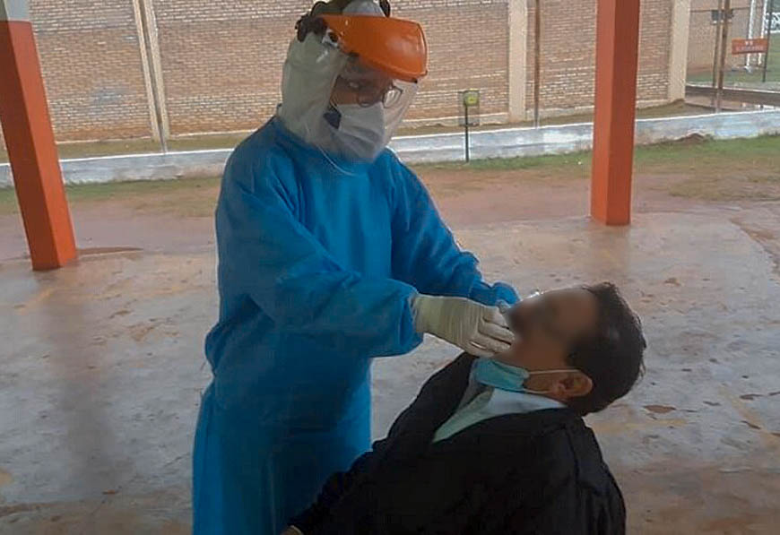 Bioquimicos del hospital regional y profesionales de la USF del barrio Universitario de San Juan extrajeron muestras de siete personas, seleccionadas aleatoriamente, que se encuentran en el penal, con el objetivo de monitorear la situacion sanitaria de la poblacion de dicha institucion. La cooperacion interinstitucional entre la VIII Region Sanitaria y la Penitenciaria de Misiones hace posible fortalecer de esta manera, el cumplimiento de las medidas de prevencion y proteccion contra el COVID-19, segun establece el protocolo sanitario.