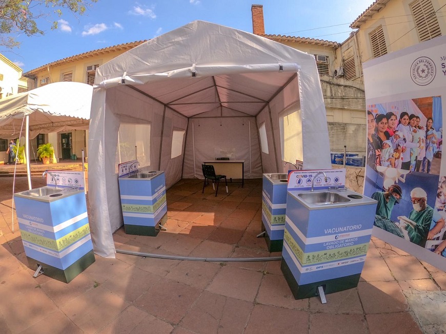 En un acto realizado en instalaciones el Ministerio de Salud Publica y Bienestar Social fueron entregadas 10 carpas de campana, todas equipadas con escritorios, sillas y mamparas divisorias para la vacunacion de los ninos en todo el pais. La Dra. Soraya Araya destaco en presencia del Ministro de Salud, Dr. Julio Mazzoleni, que el objetivo de estas carpas es asegurar la vacunacion en tiempos de pandemia de modo a que los padres tengan la seguridad de que, si llevan a sus ninos a los vacunatorios, los llevan a una zona donde no hay riesgo de circulacion de pacientes con Covid. Ademas de las carpas, tambien fueron entregados 50 lavamanos a pedal para cada region sanitaria. Por su parte el Dr. Roberto Escoto, representante de la OPS en Paraguay senalo la importancia de esta donacion. â€Å“Con estos pequenos aportes se puede marcar la diferencia. El tema de vacunacion nos preocupa porque el Covid esta entre nosotros, pero si tenemos un rebrote de Sarampion, Varicela o Meningitis el panorama estara mas complicado para la ciudad y comprometera a los servicios de saludâ€. Para una proxima entrega se preve la llegada de 10 carpas, 10 escritorios, 20 sillas, 10 separadores de acrilico para escritorios y 64 lavamanos que se podran utilizar en el Chaco.