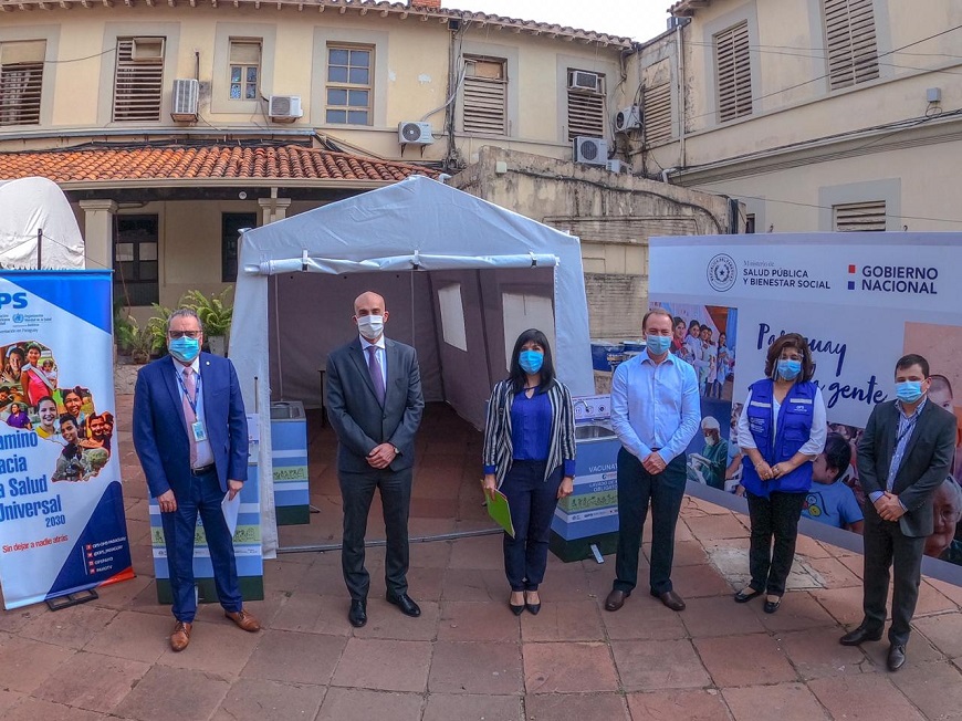 A modo asegurar la protección de los usuarios que acuden a los servicios de salud para recibir vacunación segura y oportuna, la Organización Panamericana de la Salud - OPS y la Embajada del Japón, entregaron carpas e insumos al Ministerio de Salud Pública y Bienestar Social para su distribución a diez regiones sanitarias.