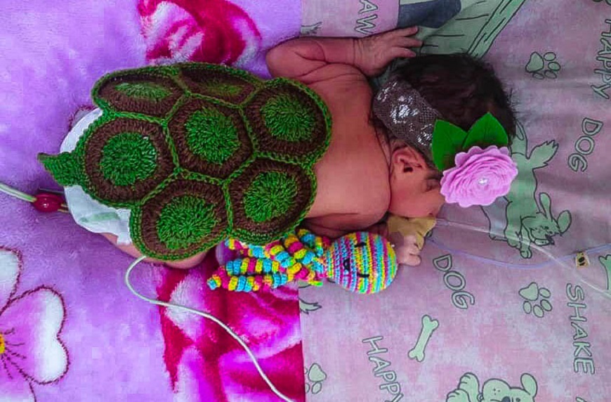 “Despacito y con cuidados, llegaré muy lejos” es la consigna de la Semana del Prematuro 2020, en este servicio materno infantil de Salud Pública.El look 2020 es de tortuguitas, con caparazones de hilo y sus inseparables pulpitos al lado.