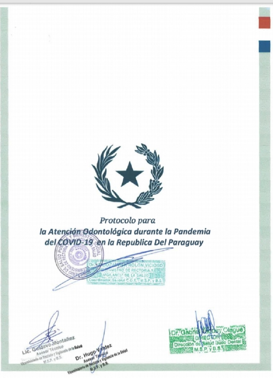 Todos los servicios que ofrezcan atencion odontologica, dependientes de la XVIII Region Sanitaria, Capital, implementaran el nuevo protocolo de atencion durante la pandemia. Mas de 50 profesionales odontologos jefes de servicios de odontologia de Capital participaron de una reunion virtual para interiorizarse del nuevo protocolo vigente. En la ocasion, el Dr. Walter Mendieta, Jefe Regional de Odontologia Capital, actuo de moderador y brindo los detalles del nuevo documento. Asi tambien, el Director Salud Bucodental, Dr. Gabriel Taddey, explico detalladamente el alcance y los mecanismos de atencion que se brindara a la poblacion, tanto asuncena como del pais, siempre priorizando todos los mecanismos de proteccion individual de los pacientes, profesionales y de toda la comunidad. La aplicacion de estas medidas para odontologos y personal auxiliar que prestan atencion de pacientes en establecimientos publicos o privados habilitados por parte del Ministerio de Salud, es de acatamiento obligatorio, en todo el territorio nacional, como parte de las acciones preventivas y de mitigacion dictadas por el MSP. Acceda al protocolo en el siguiente enlace: Â