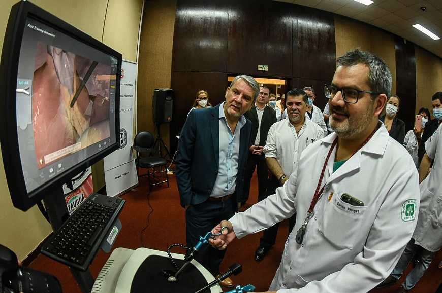 En la jornada de este lunes fue presentado en el Hospital Nacional de Itaugua en nuevo Simulador Virtual de Procedimientos Laparoscopicos SIMBIONIX Lap Mentor. El acto tuvo la presencia de una comitiva del Ministerio de Salud Publica y Bienestar Social, encabezado por el ministro Dr. Julio Borba, con el acompanamiento de la directora del Hospital Nacional de Itaugua Yolanda Barrios y representantes de ASUCOM S.A. – Innovacion Medica, quienes facilitaron la donacion que asciende a un valor de USD 120.000. Este Simulador Virtual es un sistema de formacion medica, que ofrece una solucion de formacion completa para la practica quirurgica del personal medico, con el objetivo de perfeccionar la atencion en cirugias para la poblacion. Desarrollado en estrecha colaboracion con la comunidad medica. El contenido didactico incluye mapas anatomicos en 3D, videos educativos, instrucciones sobre procedimientos y practicas de simulacion de procedimientos quirurgicos en las ramas de suturas basicas, colecistectomia, hernia incisional, bypass gastrico, sigmoidectomia, nefrectomia y apendicetomia. Ademas de modulos de Ginecologia basica como ser: esterilizacion tubarica, embarazo ectopico salpingectomia, embarazo ectopico salpingostomia y ooforectomia profilactica; asi como un modulo de Ginecologia Avanzada, con histerectomia. La constante evaluacion de desempeno que tiene el personal de cirugia se facilita mediante la utilizacion de esta herramienta, que facilita datos precisos sobre los pasos criticos de los procedimientos laparoscopico y mejora el conocimiento de cada uno de ellos. Ademas, provee un ambiente seguro para la simulacion de errores y practicar el control de las complicaciones sin riesgo para el paciente. Ãrea de neurocirugia, con renovaciones Se aprovecho la ocasion para destacar las obras de readecuacion edilicia aplicadas al area de Neurocirugias del Hospital Nacional de Itaugua. Se trata de la puesta a punto de las edificaciones y renovacion de equipamientos en salas de internacion, para el mejoramiento de la atencion de pacientes.