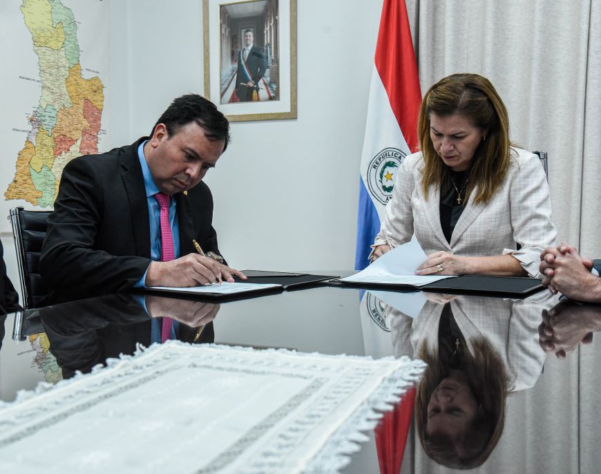 La Dra. María Teresa Barán, en representación del Ministerio de Salud Pública y Bienestar Social (MSPyBS), y Félix Fernando Ortellado Zorilla, director general de la Dirección de Beneficencia y Ayuda Social (DIBEN), suscribieron hoy un convenio marco de cooperación interinstitucional, con vigencia de cinco años, con la finalidad de brindar servicios efectivos y eficientes a los usuarios de ambas instituciones, en insumos para la salud.
