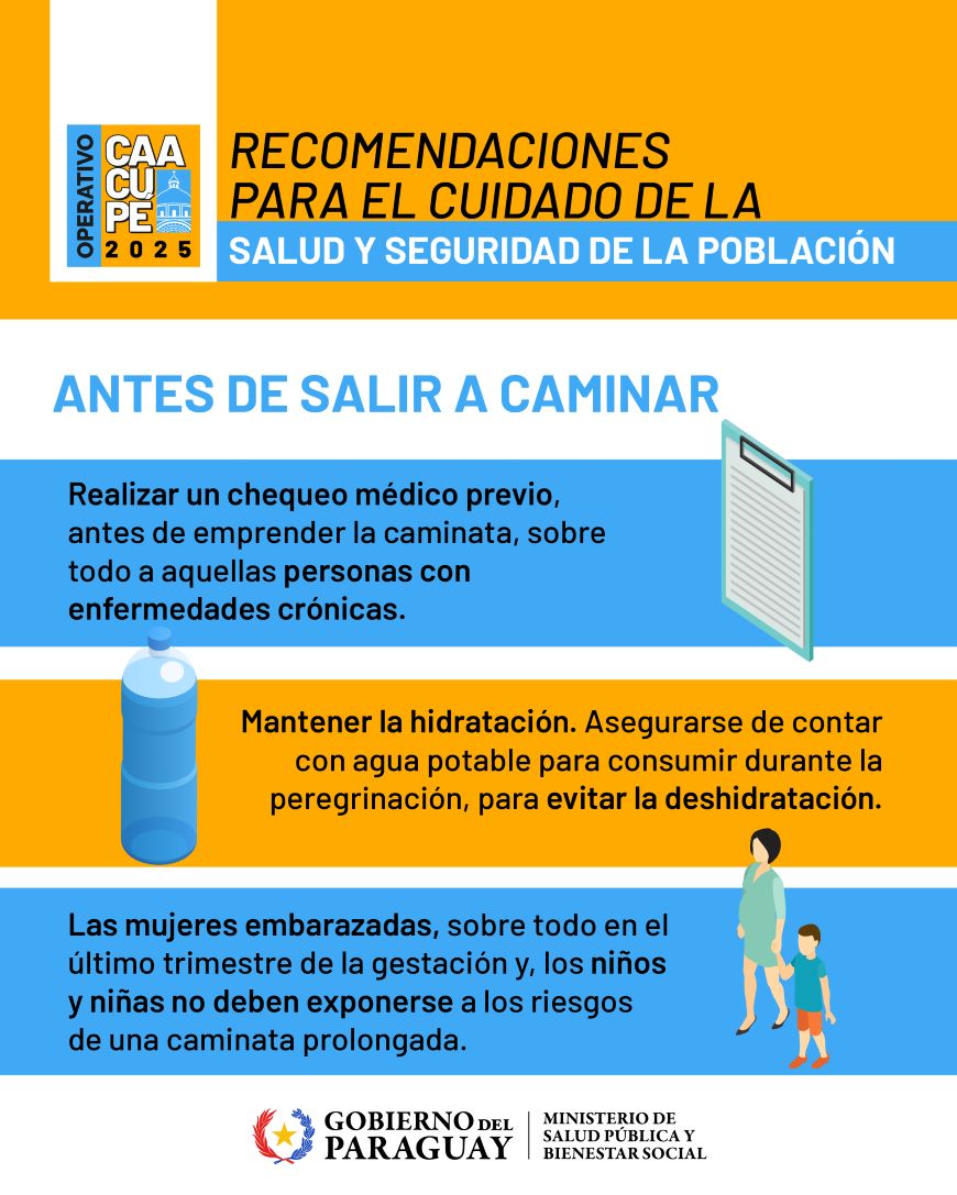 Atendiendo la gran movilizacion de personas que se espera en torno a las Festividades de la Virgen de Caacupe, provenientes de distintos puntos del pais y, teniendo en cuenta el inicio del periodo epidemico del dengue y otras Arbovirosis, el Ministerio de Salud Publica insta a la ciudadania y a las autoridades locales a adoptar medidas preventivas, a fin de evitar la transmision.