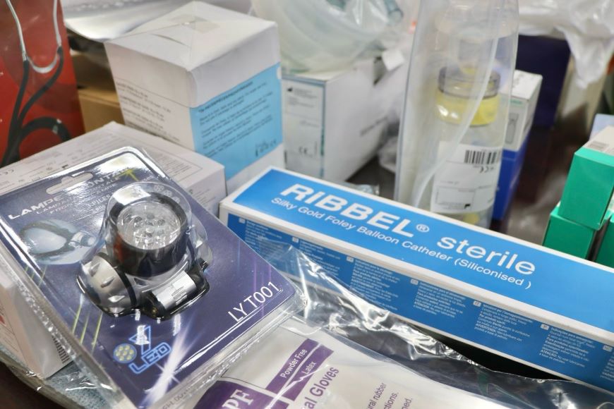 Dicho lote esta compuesto por mascaras para oxigeno pediatrico, estetoscopios, ambu pediatrico, aparatos de presion, balanzas neonatales, indumentaria para profesionales, guantes, jeringas, sonda vesical, colector de orina, hilos, punzocat, entre otros insumos medicos.