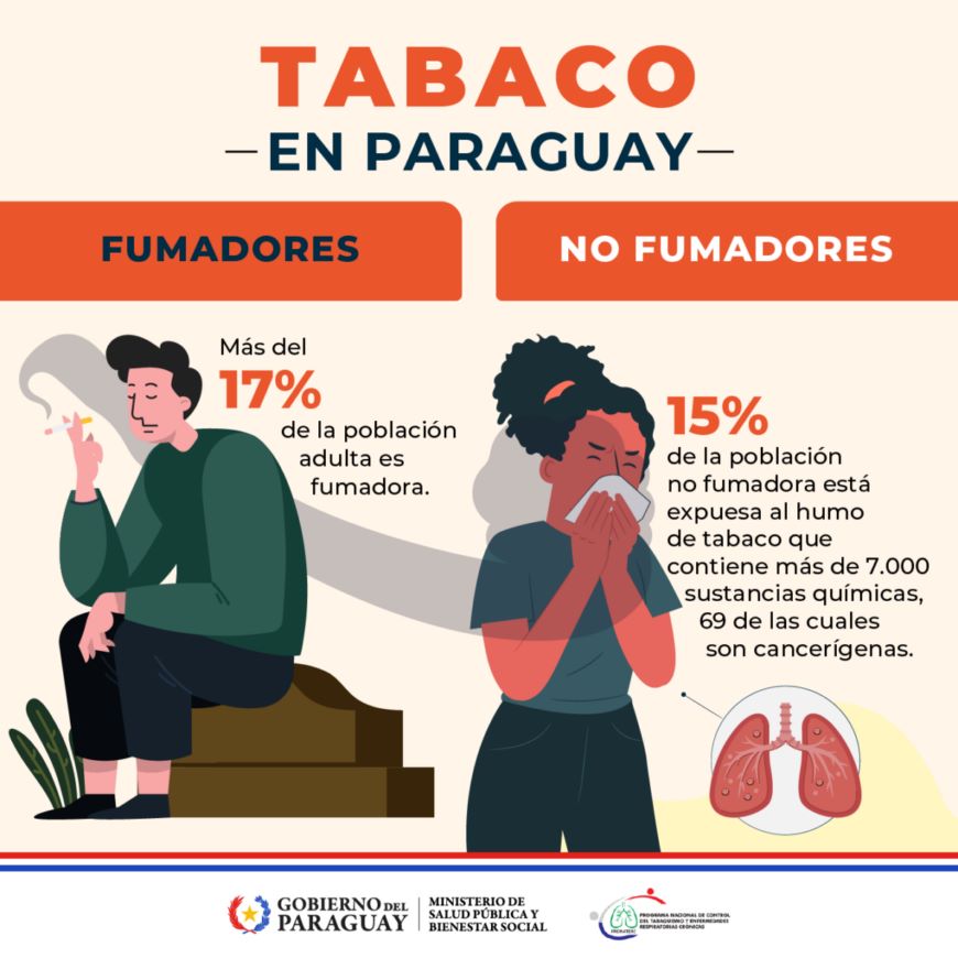 Hoy se llevo a cabo un acto conmemorativo por el Dia Mundial Sin Tabaco, en la Manzana de la Rivera, con presencia de autoridades del Ministerio de Salud, del Instituto Superior de Bellas Artes (ISBA) y la participacion de estudiantes de diversas instituciones educativas. Esta fecha fue establecida con el proposito de sensibilizar e informar acerca de los riesgos que causa a la salud el consumo tabaco. â€Å“Proteger a los jovenes de la interferencia de la industria tabacalera†es el tema central de este ano, con el cual se apunta a concienciar a los jovenes sobre el impacto negativo que estan causando los fabricantes del tabaco en la salud fisica y mental, en el ambiente con la contaminacion y devastacion ambiental, y otras areas. En Paraguay, alrededor de 12 muertes diarias estan estrechamente vinculadas al consumo del tabaco, de primera o de segunda mano. Esto equivale a unas 4.515 defunciones anuales, cuya cifra corresponde al 13.7 % del total de fallecimientos ocurridos en el territorio nacional. La Encuesta Mundial sobre Tabaco en Jovenes (EMTJ) a estudiantes del 7°, 8°, y 9° grado (de 13 a 15 anos) revela que, en el pais, el 7,2 % fuma tabaco, 3,0 % fuma cigarrillos, 1,7 % consume algun tipo de tabaco sin humo (entre ellos IQOS) y 12,5% utiliza cigarrillos electronicos (vapeadores), esto es, 1.200 ninos y adolescentes escolares que fuman y vapean. La Dra. Zunilda Palacios, directora del PRONATERC menciono que el objetivo primordial es llegar a los jovenes para concienciar sobre los peligros del vapeo y logren generar un rechazo a esta practica. â€Å“Hoy en el dia Mundial Sin Tabaco recordamos la manipulacion que tienen las industrias tabacaleras sobre los jovenes para llamar su atencion, con la utilizacion de estrategias como la publicidad, la promocion y el patrocinio de los productos de tabaco, asi como la oferta de productos saborizados que despierta el interes para fumar y vapear, y de esta manera perpetuar la adiccionâ€. La profesional de la salud menciono que el Ministerio de Salud esta trabajando conjuntamente con el Ministerio de Educacion para concientizar a los jovenes sobre los efectos nocivos y letales que provoca el tabaco, como el uso de los dispositivos electronicos como el vapeador, que segun indico, aumentaron notablemente en estos ultimos anos, pasando de 5% a 12,5%. Palacios asevero que las campanas comunicacionales son estrategias fundamentales para alertar a la poblacion e incentivar al abandono tabaquico y fundamentalmente evitar caer en la adiccion. Informo que los servicios de salud brindan atencion y tratamiento para dejar de fumar. El tratamiento puede ser conductual y farmacologico. Tambien se puede contactar a la linea gratuita 140 para recibir orientacion. Riesgos Los que fuman tienen mayor probabilidad de fallecer a edades tempranas por infarto, ACV, de contar con cancer y problemas respiratorios. El tabaquismo es principal causa del desarrollo de enfermedades pulmonares como el asma, EPOC, cancer de pulmon, tuberculosis y neumonia, al igual que otras infecciones respiratorias que son causadas o agravadas por el consumo de tabaco y la exposicion a este humo. Por una generacion libre de tabaco Es importante saber que: •Los adolescentes que consumen cigarrillos electronicos (vapeadores) tienen al menos el doble de probabilidades de fumar cigarrillos normales mas adelante en su vida. •La nicotina de los cigarrillos electronicos es una droga altamente adictiva y puede danar el cerebro en desarrollo de los ninos y producir enfermedades respiratorias. •Los IQOS, dispositivos para fumar tabaco sin humo, son igual de daninos que los cigarrillos convencionales. •Fumar pipas de agua es tan danino como otras formas de consumir tabaco. •El tabaco de mascar puede provocar cancer de boca, manchas y perdida de los dientes.