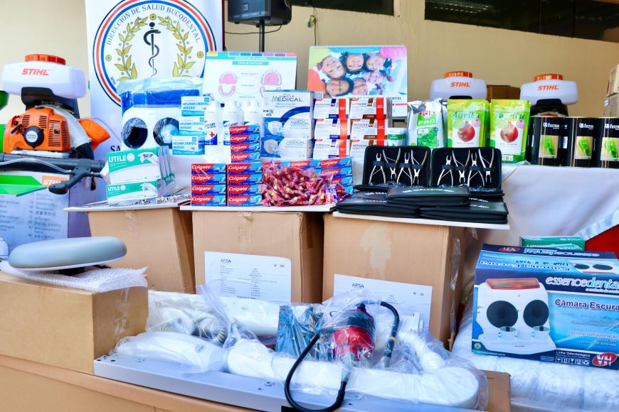 Estos insumos, instrumentales y materiales educativos seran distribuidos en los 9 servicios de odontologia con que cuenta la XIII Region Sanitaria - Amambay, para dar respuesta a las necesidades de salud bucodental de la poblacion, y a su vez realizar de forma transversal la promocion y prevencion de habitos higienicos orales para mejorar la calidad de vida, explico el Dr. Saul Recalde, director de la XIII Region Sanitaria. Recalde recibio de las manos del presidente Pena, de la Dra. Baran y del gobernador Juan Acosta los materiales odontologicos durante un acto en sede de la Gobernacion de Amambay en Pedro Juan Caballero. El lote de equipamientos e insumos entregados consistio en ionomeros de vidrio, resinas y materiales de obturacion provisoria, asi como anestesicos, agujas, entre otros. La entrega incluyo instrumentales de inspeccion como ser espejos bucales, sondas exploradoras y pinzas de algodon. La Region Sanitaria de Amambay tambien recibio instrumentales quirurgicos, entre ellos forceps, tijeras, elevadores, porta bisturi, jeringas y separadores. Ademas, fueron entregados 5 aparatos de Rayos X con cajas reveladoras y tornos colgantes. El componente incluye 2.000 kits de higiene bucal y rotafolios educativos. El costo de los equipos e insumos odontologicos entregados para los 9 servicios de Salud en esta region supera los G. 210 millones. Durante el acto, el gobernador Acosta agradecio las constantes visitas que realiza la ministra de Salud al departamento. "Habilitamos hace poco un hospital en un predio de la Gobernacion. Una hermosa obra que estaba parada por falta de apoyo y la ministra nos dio esos soportes para poder ya trabajar. Es asi que tenemos un centro de especialidades medicas que practicamente esta atendiendo mil pacientes por dia", senalo la autoridad departamental.