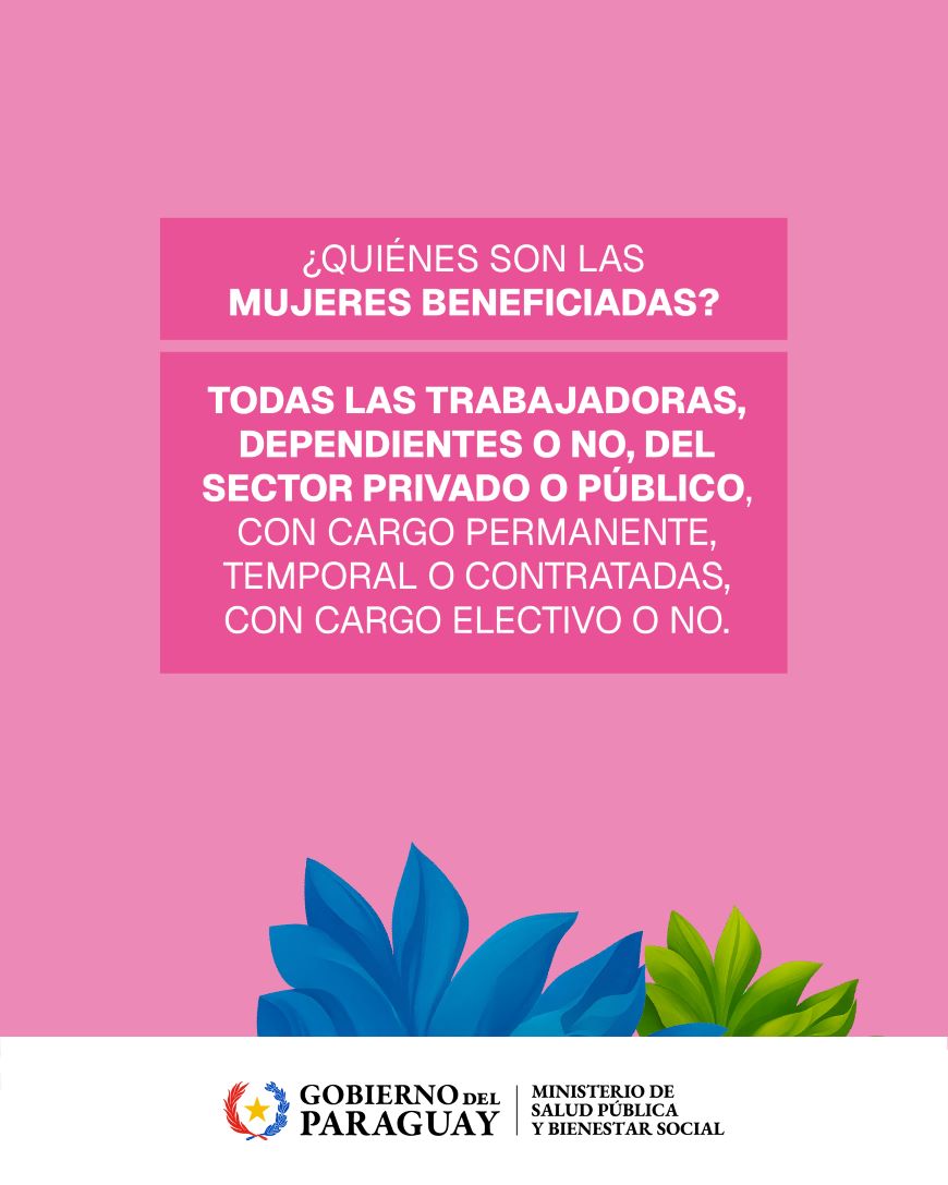 - A través de la Ley N.º 6211/18 se otorga licencia remunerada para realizarse la mamografía y PAP, cada año.
