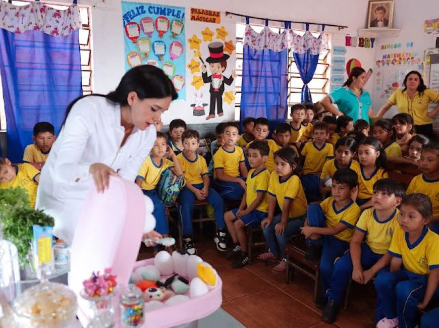 La XIII Región Sanitaria – Amambay, a través del componente “Caries Cero” del Programa Hambre Cero, realizó una jornada de promoción de la salud bucal en la Escuela Básica N.º 7207 “Santo Domingo Savio” del barrio Fracción Santa Ana. La actividad, que contó con la participación de 75 niños y niñas del preescolar, primer y segundo grado, tuvo como objetivo educar sobre la importancia de la higiene bucal y la alimentación saludable. Durante la charla educativa, la Dra. Natalia Medina y su equipo explicaron la técnica correcta de cepillado dental y la prevención de enfermedades bucales desde la primera infancia. Además, cada niño y niña recibió un kit de higiene bucal para promover la práctica diaria de hábitos saludables. El Ministerio de Salud Pública y Bienestar Social participa en el Programa Hambre Cero, brindando un plan de acción centrado en la salud de los estudiantes, ofreciendo atención odontológica, promoción de escuelas saludables, controles de salud ocular y auditiva. También se impulsa el plan de vacunación contra la varicela, el tétanos y el VPH, así como la campaña nacional de desparasitación masiva, además del Sistema de Vigilancia Alimentaria y Nutricional (SISVAN).
