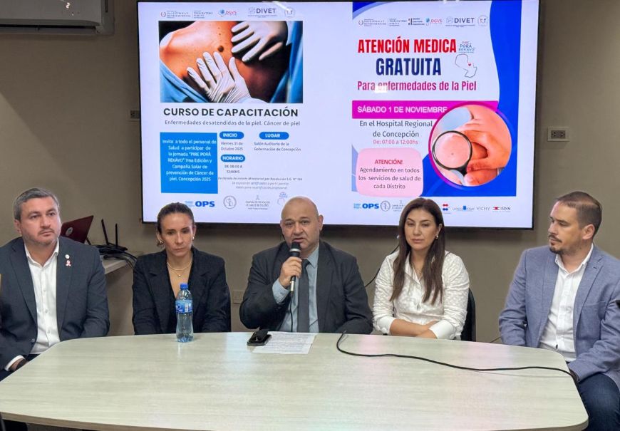 El Ministerio de Salud Pública y Bienestar Social (MSPYBS), a través del Programa Nacional de Control de la Lepra, con el apoyo de la Sociedad Paraguaya de Dermatología y la Sociedad Paraguaya de Microbiología, llevará adelante jornadas de diagnóstico y prevención de cáncer de piel y enfermedades dermatológicas, en el marco de la VII edición de la campaña “Pire Porã Rekavo – Concepción 2025”. El objetivo de la iniciativa es concienciar a la población sobre el riesgo de la exposición solar, promocionar los cuidados de la piel frente a los efectos adversos del sol, como identificar una lesión sospechosa de cáncer de piel y enfermedades dermatológicas y la consulta precoz ante signos sugerentes de cáncer de piel u otras afecciones dermatológicas. Durante el lanzamiento de esta edición, la directora del Programa Nacional de Control de la Lepra, Dra. Olga Aldama, destacó el desarrollo de la campaña que beneficiará a la población del norte del país. “Nuestro objetivo es poder encontrar pacientes que sufran de enfermedades de la piel, sobre todo desatendidas y cáncer de piel, y brindarles un tratamiento oportuno, y realizar las cirugías en el lugar en el caso de ser necesarias. Además, vamos a capacitar al personal de salud y dejar capacidad instalada”. Por su parte, el viceministro de Rectoría y Vigilancia de la Salud, Dr. José Ortellado, destacó el enfoque social y comunitario de este programa y el fortalecimiento de las capacidades del personal de salud para identificar y tratar afecciones dermatológicas, incluyendo cáncer y erupciones cutáneas. “Con esta actividad buscamos ofrecer asistencia especializada y fomentar la participación de la comunidad en el sistema de salud, con el objetivo de transformar los métodos de diagnóstico y mejorar la formación en salud dermatológica”. Acompañaron el lanzamiento de esta actividad la presidenta de la Sociedad Paraguaya de Dermatología (SOPARDER), Dra. Romina Contreras; el director de la I Región Sanitaria, Dr. Cecilio Roig, y el director del Hospital Regional de Concepción, Dr. Mario Pérez. Programa Pire Porã Rekavo/Campaña Solar 2025 • Viernes, 31 de octubre 2025: Jornada de capacitación al personal de blanco Lugar: Salón Auditorio de la Gobernación Inscripción 08:00 Capacitación: 09:00 a 17:00 • Sábado, 1 de noviembre 2025: Jornada de asistencia Lugar: Atención en el Hospital Regional de Concepción Hora: 08:00 a 16:00 Esta campaña se realiza desde el 2016 hasta 2018, en San Pedro, Caaguazú y Misiones. En el 2023 fue reactivada y realizada en Caazapá y en el 2024 en Ñeembucú. Desde el MSPYBS se invita a la población del departamento de Concepción a acudir a sus servicios, desde el primer nivel de atención en las Unidades de Salud de la Familia (USF), para la evaluación necesaria e identificar los casos que requieran la atención especializada. Acceder al diagnóstico y tratamiento oportuno es esencial para el control de enfermedades.