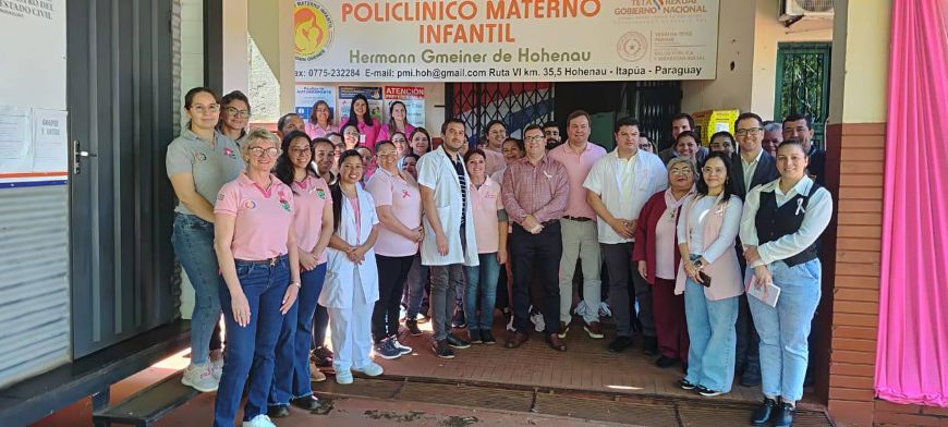 El Policlínico Materno Infantil de Hohenau incorporó el servicio de mamografía como parte de su compromiso con la salud pública y la prevención del cáncer de mama. Este nuevo servicio beneficiará no solo a las mujeres de Hohenau, sino también a quienes residen en los distritos de Trinidad, Jesús, Obligado y Bella Vista. El estudio estará disponible de lunes a viernes, de 08:00 a 12:00, con agendamiento previo desde las 07:00 en el área de admisión del centro asistencial. La puesta en marcha del servicio fue posible mediante las gestiones del Ministerio de Salud Pública y Bienestar Social, a través de la VII Región Sanitaria, en colaboración con autoridades regionales de salud y representantes del municipio local. Con esta incorporación, el Policlínico Materno Infantil de Hohenau amplía su capacidad de atención y fortalece su trabajo en salud pública, aportando a la lucha contra el cáncer de mama mediante la detección oportuna. Campaña "Octubre Rosa" En este mes de octubre, con el lema: "Hagamos de la prevención una tradición", se busca generar conciencia sobre los controles anuales, para apoyar el aumento del retorno de las mujeres a sus controles médicos utilizando los días laborables que brinda la Ley N° 6211/18, y de esa manera incentivar la prevención y detección precoz del cáncer de mama. Los requisitos para acceder a una mamografía son: tener 40 años en adelante, el día del estudio no ponerse desodorante, talco ni crema ya que puede interferir en el resultado; el mejor momento es una semana después del periodo menstrual porque es cuando las mamas están menos sensibles.