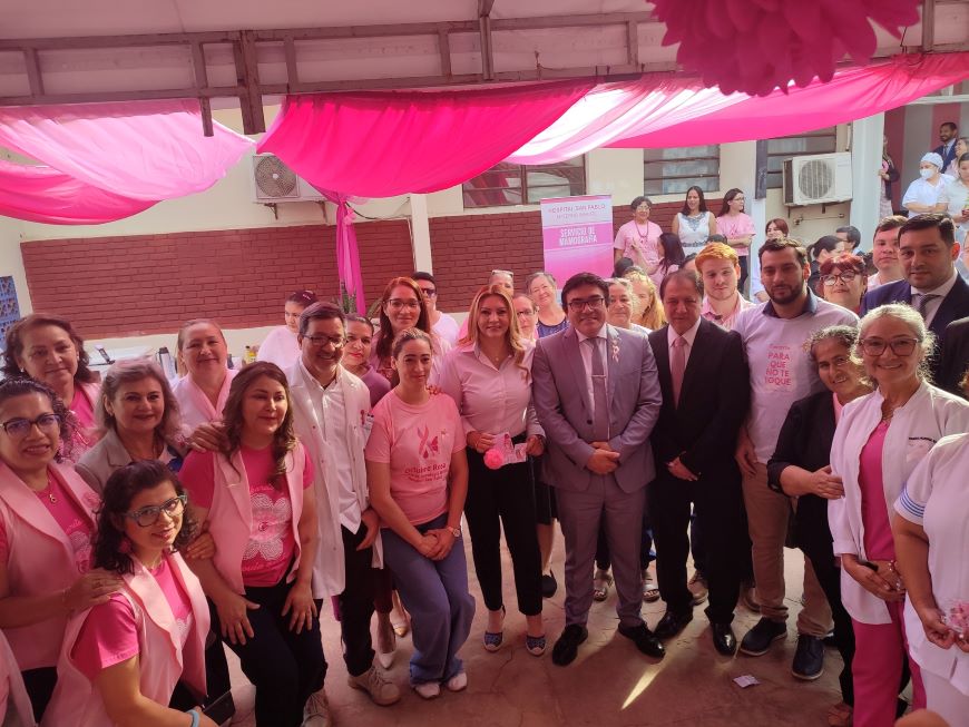 “La pasión por vivir y recuperar la salud que manifiestan las pacientes en tratamiento por cáncer de mama alienta al equipo de expertos del Hospital Día (división oncológica) y de la dirección del Hospital General Materno Infantil San Pablo a intentar siempre mejorar la oferta de servicios a las y los pacientes en lucha contra esta y otras formas de cáncer”, expresó el director general del Hospital San Pablo, Profesor Doctor Vicente Acuña Appleyard. La jornada de donación de sangre y conmemoración de JEROVIA fue el evento central del Octubre Rosa en este servicio. "Desde el lugar que nos toque actuar para vencer el cáncer de mama, convirtamos los días malos en días buenos con nuestro esfuerzo y compromiso", finalizó el Dr. Acuña Appleyard. Por su parte, el Licenciado Gustavo Aveiro, coordinador de Medicina Transfusional, comentó que la ocasión es oportuna para "inaugurar nuestro nuevo centro de colecta; más amplio, para dar mayor comodidad a nuestros donantes voluntarios. También inauguramos oficialmente la sala de inmunohematología para las pruebas pretransfusionales e incorporamos el equipo para obtener plasmaféresis por donantes voluntarios", relató. Estas pruebas pretransfusionales son de gran importancia. "Para que ingrese una donación de sangre, se debe conocer que el donante tiene todas las serologías negativas, de modo a obtener de manera segura el plasma, y que este sea apto para el uso terapéutico o como materia prima para la obtención de medicamentos, sea albúmina, inmunoglobulina y otros". “Los derivados de una donación de sangre son glóbulos rojos, plaquetas, plasma fresco, crio-precipitados", enumeró el Lic. Aveiro. La importancia de contar con un stock se debe a que son pacientes que continuamente requieren transfusión para continuar con el tratamiento. Una tradición Esta jornada de donación de sangre para pacientes en tratamiento del cáncer de mama representa una tradición. Es una acción conjunta entre la Unidad de Medicina Transfusional (Banco de Sangre) y el Hospital Día, unidad oncológica del Hospital Materno Infantil "San Pablo". Abordaje multidisciplinario del cáncer El tratamiento de un paciente con cáncer requiere un tratamiento multidisciplinario. Todas las especialidades son importantes, como salud mental, fisioterapia, odontología, nutrición, medicina transfusional, farmacia, laboratorio; todos son soportes indispensables para la parte médica que se basa en tres ejes posibles de tratamiento: la cirugía oncológica, la oncología clínica o quimioterapia y la oncología radiológica o radioterapia. Todas estas disciplinas se complementan para un tratamiento integral. Jornada de muchas emociones con Jerovia Las reinas de la jornada de Octubre Rosa han sido las pacientes oncológicas del Hospital Día "San Pablo" agrupadas en la organización de sociedad civil "Jerovia", donde se contó con un momento musical y otros de donación de pelucas naturales, charlas sobre temas como la resiliencia y el apoyo nutricional al tratamiento; asimismo, participaron del baile de zumba. Participaron de la jornada el Dr. Gustavo Ortiz, director general de Desarrollo de Servicios y Redes de Salud, y la Dra. Ana Collante, directora de Hospitales Especializados, ambas dependencias del Ministerio de Salud Pública.