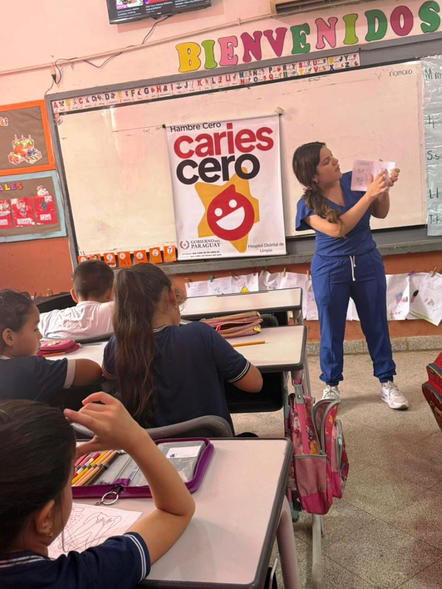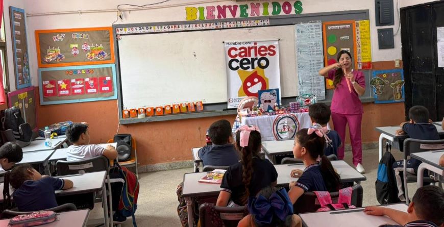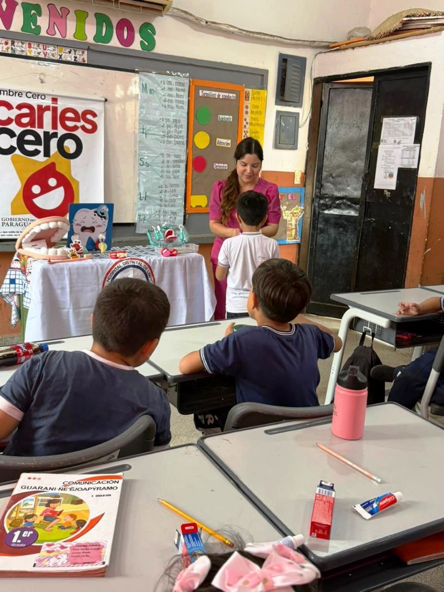 El servicio de odontología del Hospital Distrital de Limpio y los equipos de las USF Villa Madrid, Villa Anahí, Ciudad Jardín y San Vicente de la XI Región Sanitaria – Central llevaron a cabo una actividad en la que realizaron exámenes e inspecciones bucales, además de educación y promoción de la salud bucodental en 12 escuelas del distrito. Esto benefició a 3.849 niñas y niños. Durante la actividad, se entregaron kits de higiene bucal y se enseñaron técnicas de cepillado a los estudiantes. La iniciativa se realiza en el marco de Caries Cero, componente del Programa Hambre Cero, que busca fomentar la salud bucal mediante educación y cuidados dentales esenciales para la población infantil. El Ministerio de Salud Pública y Bienestar Social participa en el Programa Hambre Cero, brindando un plan de acción centrado en la salud de los estudiantes, ofreciendo atención odontológica, promoción de escuelas saludables, controles de salud ocular y auditiva. También se impulsa el plan de vacunación contra la varicela, el tétanos y el VPH, así como la campaña nacional de desparasitación masiva, además del Sistema de Vigilancia Alimentaria y Nutricional (SISVAN).