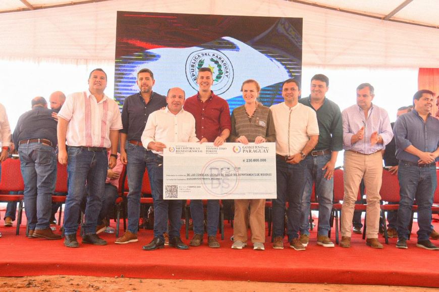 En el marco de la jornada del Gobierno del Paraguay encabezada por el presidente Santiago Peña y el vicepresidente, Pedro Alliana, la ministra de Salud Pública, Dra. María Teresa Barán, hizo entrega de aportes y equipamientos para optimizar los servicios de salud en el departamento de Misiones.