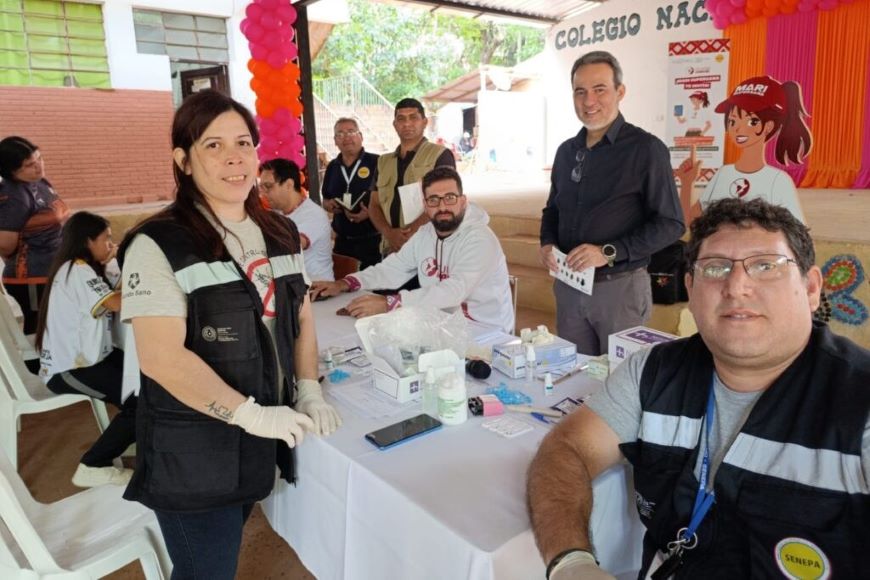 En la localidad de Cerro León (Paraguarí), los equipos locales de salud y los técnicos del Programa Nacional de Control de la Enfermedad de Chagas del SENEPA promovieron la importancia de realizar el test en mujeres en edad fértil y recordaron que el proceso es gratuito, confidencial y sencillo. Durante la actividad se efectuaron pruebas rápidas, charlas educativas sobre autoexamen de mamas y presentaciones artísticas con la participación de niños, jóvenes y madres de familia. El personaje “Mari Supersana”, símbolo de la campaña, acompañó las actividades recreativas, incentivando el cuidado de la salud de manera divertida. Por su parte, en la ciudad de Caacupé (Cordillera) se desarrolló el último lanzamiento distrital de la campaña, con charlas informativas y toma de pruebas rápidas en el colegio San Miguel Arcángel. Se abordó la importancia de prevenir la transmisión vertical de esta patología, es decir, de madre a hijo durante el embarazo, y se destacó la articulación interinstitucional para fortalecer la promoción de la salud en las comunidades. Las actividades contaron con la participación de estudiantes, docentes, vecinos y funcionarios del SENEPA. La comunidad educativa expresó su agradecimiento por la iniciativa, que combina información científica, prevención y participación ciudadana en torno a una causa común: un Paraguay libre de Chagas.