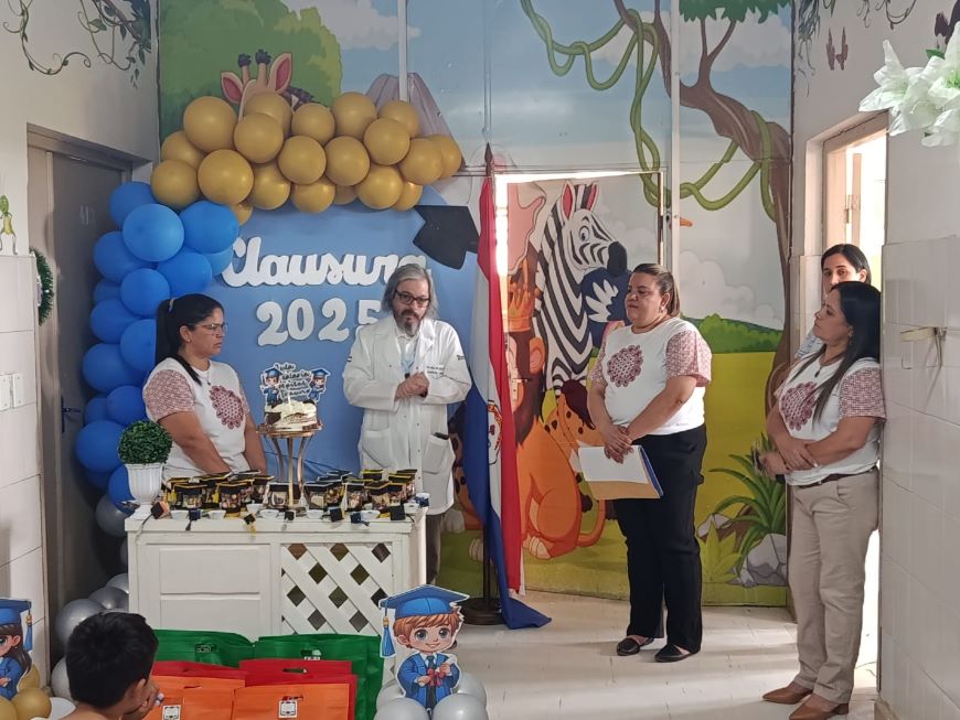 Durante el 2025, las tres docentes designadas por el MEC brindaron apoyo escolar desde el nivel inicial hasta el tercer ciclo, acompañando a más de 500 pacientes pediátricos entre enero y noviembre, quienes participaron activamente de actividades educativas, lúdicas y recreativas que fortalecieron su desarrollo académico y emocional. El acto de clausura contó con la presencia del director general, Dr. Juan Manuel Fernández Valdovinos; el director médico, Dr. Luis Carlos Báez; además, directores, jefes de departamento, alumnos y sus familias. Las docentes del Aula Hospitalaria tuvieron a su cargo la coordinación del evento, donde se expresaron palabras de agradecimiento, reconocimiento y satisfacción por el compromiso demostrado durante todo el año. La Lic. Rossana Jara, en representación del Servicio de Pediatría, destacó la importancia del trabajo articulado entre las docentes y el equipo hospitalario, señalando que este esfuerzo conjunto “redunda en un beneficio directo para nuestros niños, brindándoles oportunidades de aprendizaje, contención y esperanza incluso en los momentos más difíciles”. Durante la clausura, se anunció el inicio de la Colonia de Verano 2025–2026, que se desarrollará durante los meses de diciembre, enero y febrero, dirigida exclusivamente a los pacientes internados en el Servicio de Pediatría. La colonia ofrecerá actividades recreativas, educativas y de integración para todas las edades, con el fin de acompañar el bienestar integral de los niños y niñas hospitalizados. El Hospital de Trauma “Manuel Giagni” demuestra su trabajo constante con la humanización de la atención, el apoyo a las familias y la promoción de espacios que permitan a los pacientes aprender, jugar y construir esperanza, incluso en el contexto de la internación.