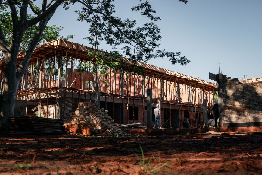 • Prosiguen las obras de construcción del nuevo albergue en el Hospital Nacional de Itauguá, una infraestructura que se sumará al fortalecimiento de una atención más digna a familiares de pacientes que acuden a este centro de referencia.