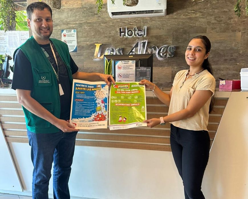 El Ministerio de Salud Pública, a través de la Dirección General de Promoción de la Salud, impulsa acciones contra las arbovirosis como dengue, Zika y chikungunya mediante la concientización y la movilización de la comunidad para prevenir criaderos de Aedes aegypti. Por ello, se enfatiza la participación ciudadana en los municipios y dentro de este contexto, integrantes de la dirección recorrieron comercios y puntos turísticos de la ciudad de San Bernardino, teniendo en cuenta la alta afluencia de visitantes durante la temporada, para la entrega de afiches informativos sobre cómo combatir la proliferación de mosquitos. La actividad contó con la participación activa de los ciudadanos, a quienes se les reiteró la necesidad de realizar controles periódicos en patios y jardines, una vez por semana y especialmente después de las lluvias. Acciones concretas sugeridas Durante la actividad se destacó la importancia de inspeccionar el patio y el interior de las viviendas al menos 10 minutos al día. Con esta sencilla acción se protege la salud individual, la de la familia y toda la comunidad, contribuyendo así a salvar vidas siguiendo estas recomendaciones esenciales: · Evitar y/o eliminar: desechar todos los recipientes inservibles que puedan acumular agua (latas, botellas, neumáticos, plásticos). · Vaciar: dar vuelta baldes, palanganas, bebederos de animales y platos de macetas. Cepillar sus bordes para remover huevos del mosquito. · Tapar: mantener herméticamente cerrados tanques, tambores y cualquier depósito de agua de uso. · Mantener limpios: canaletas, desagües y registrar patios para evitar acumulaciones de agua de lluvia. Además, se promueve la organización comunitaria para realizar jornadas de mingas ambientales en los barrios, con el apoyo de municipios y comisiones vecinales. La vigilancia entre vecinos y el compromiso de mantener los espacios públicos libres de potenciales criaderos son pilares fundamentales.