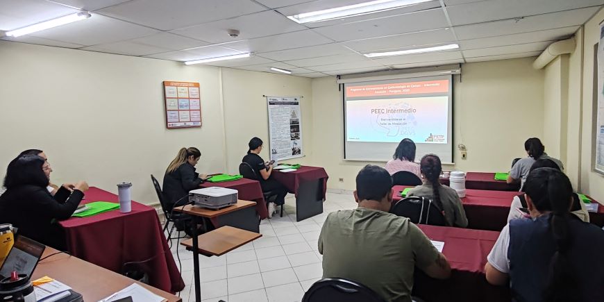 La apertura del taller del Programa de Entrenamiento en Epidemiología de Campo (PEEC) del nivel intermedio en su tercera cohorte se realizó con la presencia de la Dra. Andrea Ojeda, directora general de Vigilancia de la Salud, y bajo la coordinación de la Dirección de Docencia e Investigación. El propósito de esta capacitación es fortalecer la vigilancia epidemiológica, mejorar la capacidad de detección, el análisis, la interpretación y la respuesta ante brotes. Del entrenamiento participan diez referentes, epidemiólogos de campo en formación, dos de ellos del nivel regional (del Programa Regional PAI – Alto Paraná y de la Unidad de Epidemiología Regional – Itapúa) y ocho del nivel nacional (del Programa Nacional de Control de Zoonosis, de la Dirección de Alerta y Respuesta, del Instituto Nacional de Prevención Cardiovascular y del Programa Nacional de Prevención, Vigilancia y Control de Infecciones Asociadas a la Atención de la Salud). La Dra. Rosa Galeano, directora de la Dirección de Docencia e Investigación, explicó que el entrenamiento del nivel intermedio tiene una duración de 9 meses, con la realización de un taller de 5 días, una vez al mes. A su vez, la Dra. Andrea Ojeda, directora general de Vigilancia de la Salud resaltó que Paraguay actualmente se posiciona como uno de los países líderes en entrenamiento en epidemiología de campo, con el egreso de varias cohortes en los diferentes niveles, por lo que instó a mantener entre todos ese estándar de formación. En este tiempo, los referentes que están siendo capacitados combinarán el entrenamiento del programa con sus labores en sus puestos de trabajo, en donde realizan tareas con los propios datos recolectados en la vigilancia, con las nuevas herramientas de análisis que se les proporciona durante el entrenamiento.