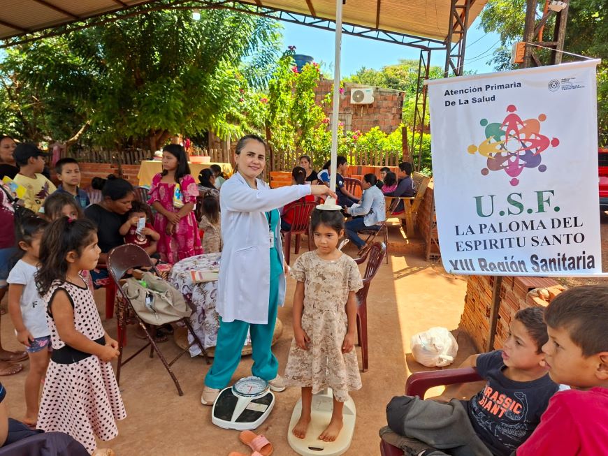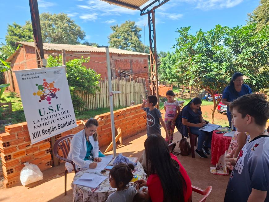 La actividad se llevó a cabo con el objetivo de acercar los servicios sanitarios y efectuar controles integrales a las familias en su comunidad. Durante la jornada fueron atendidas 53 familias, totalizando 100 personas asistidas, brindando controles médicos generales con énfasis en el crecimiento y desarrollo infantil, además de la verificación de las tarjetas de vacunación para garantizar el cumplimiento del esquema regular de vacunación. Asimismo, se realizaron exámenes de Papanicolaou y pruebas de VPH dirigidos a mujeres de la comunidad, trabajando así la prevención y detección oportuna de enfermedades. La jornada estuvo a cargo del equipo de salud, encabezado por la Dra. Nidia Bogarín, médica de familia de la USF, y contó con el apoyo de la Lic. Graciela Guillén, encargada del programa Tekoporã. Sobre la atención extramural La atención extramural consiste en una jornada impulsada por el Ministerio de Salud Pública y Bienestar Social mediante la cual se trasladan diferentes servicios médicos directamente a las comunidades, especialmente a aquellas de difícil acceso o zonas rurales. Durante estas jornadas se ofrecen consultas, diagnósticos, vacunación, educación en salud y otras atenciones fuera de los establecimientos tradicionales.