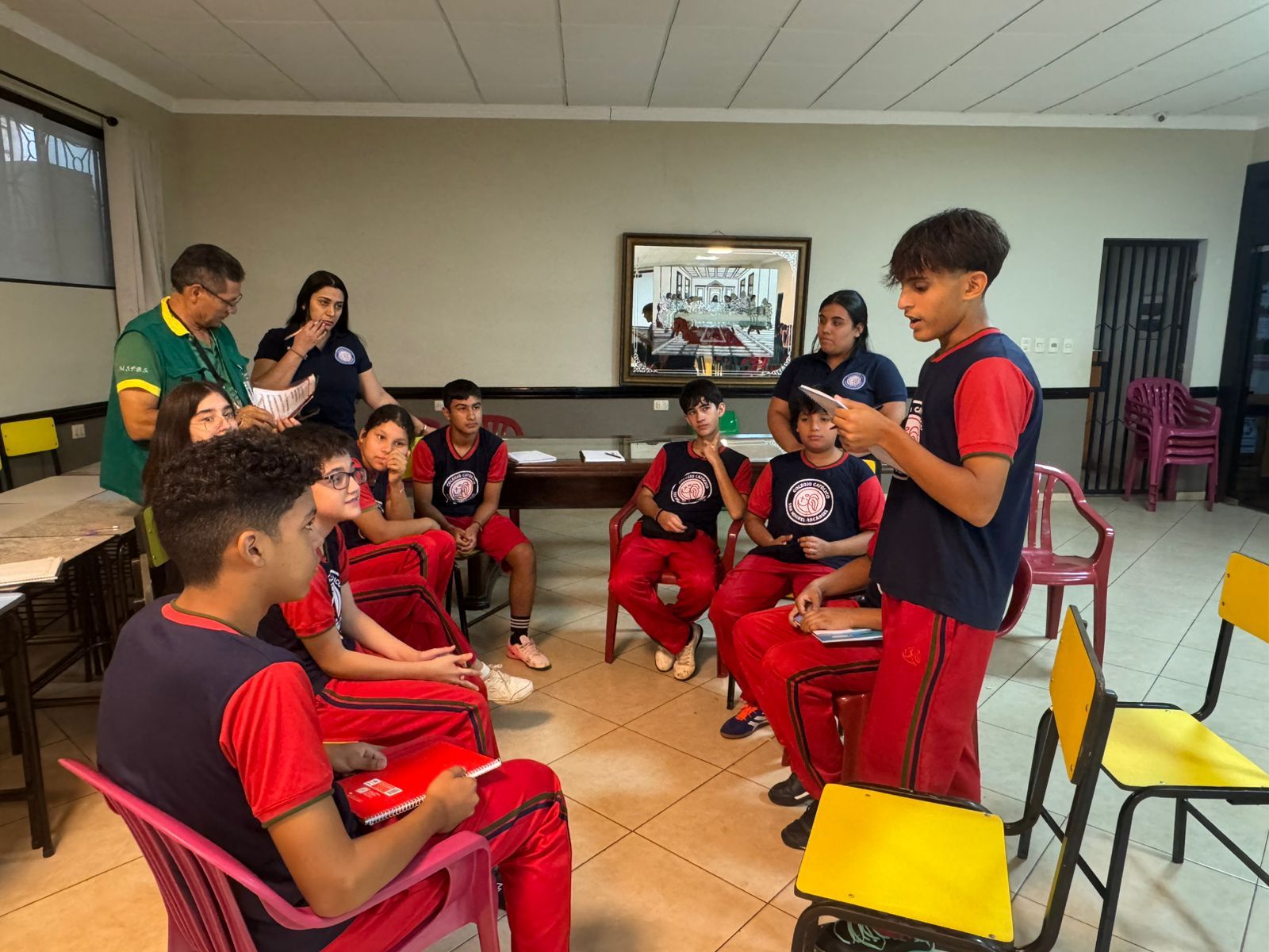 En la jornada de capacitación, los estudiantes de la Escuela Básica y Colegio Católico N.º 4738 San Miguel de Ciudad del Este recibieron herramientas prácticas para el desarrollo personal y social a través de la metodología Familia Saludable. La actividad reunió a estudiantes de Educación Escolar Básica (7.°, 8° y 9° grado) y cuatro docentes, quienes participaron activamente de los trabajos grupales. La dinámica se centró en el desarrollo del Módulo 4 de la metodología Familia Saludable “Adolescencia - Entre la Osadía y el Miedo”, que en su capítulo 3 habla sobre el establecimiento de acuerdos, autonomía y toma de decisiones en la adolescencia. Los participantes se dividieron en tres grupos de trabajo para analizar los contenidos y, posteriormente, expusieron sus conclusiones en una plenaria. Este espacio permitió el intercambio de ideas y experiencias propias, el fomento del pensamiento crítico frente a los desafíos de salud actuales y el fortalecimiento de lazos de colaboración entre pares y docentes. Con esta actividad no solo se busca que los jóvenes reciban información, sino que se conviertan en agentes de cambio dentro de sus familias y su comunidad.