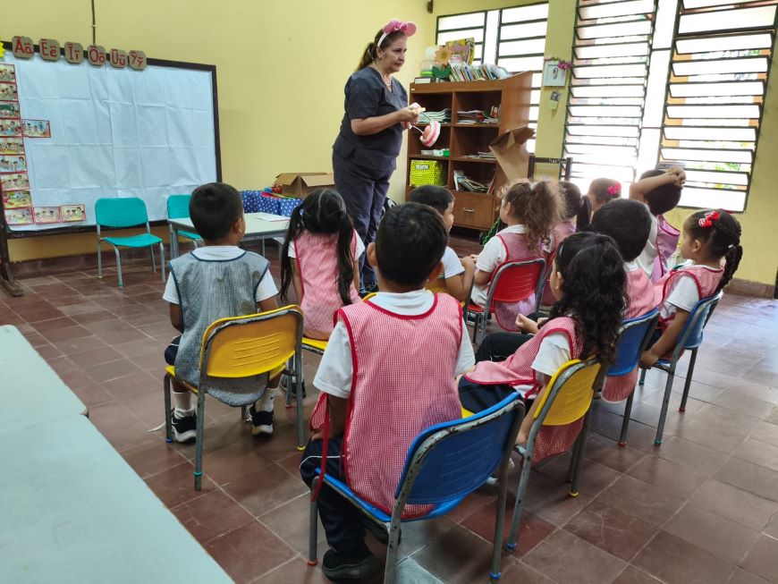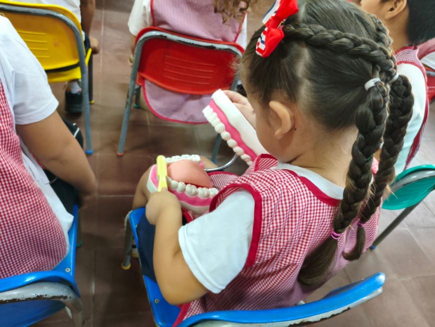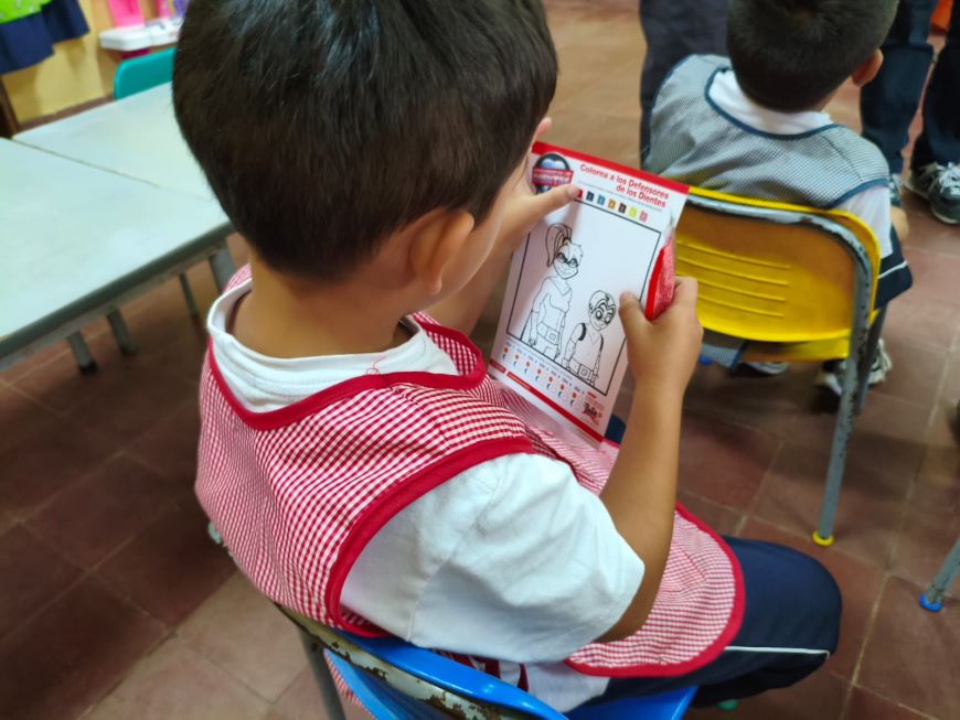 Con el objetivo de instaurar hábitos de higiene adecuados desde la etapa escolar, los alumnos de la Escuela Mariscal López participaron de una actividad educativa sobre la técnica correcta de cepillado dental en el marco de la implementación de la estrategia Escuela Saludable. La actividad se centró en dos componentes fundamentales del protocolo de atención de salud escolar: la salud bucodental y la prevención de enfermedades a través de la vacunación, y fue coordinada por referentes de Promoción de la Salud, odontología y Programa Ampliado de Inmunizaciones (PAI). Como complemento práctico a la capacitación, cada estudiante recibió un kit de higiene bucal compuesto por cepillo y pasta dental. Asimismo, se entregaron materiales didácticos consistentes en dibujos temáticos para colorear, diseñados como refuerzo pedagógico para fijar los conocimientos adquiridos sobre el cuidado de la dentición de manera lúdica. De forma simultánea, se llevó a cabo la aplicación de dosis correspondientes a la Campaña de Vacunación SPR 2026 (sarampión, paperas y rubéola). Esta acción asegura que los niños y niñas cuenten con el esquema de vacunación vigente, protegiendo no solo a la persona, sino a todo el entorno escolar.