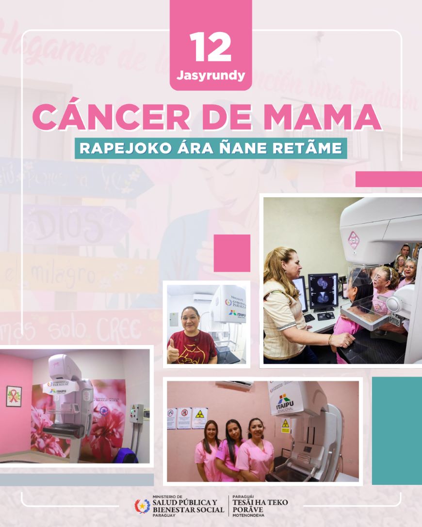 Cada 12 de abril, Paraguay conmemora el Día Nacional de Lucha contra el Cáncer de Mama, en guaraní Cáncer de Mama Rapejoko Ára Ñane Retãme, una fecha que reafirma la importancia de la detección precoz, el acceso oportuno a los servicios de salud y el fortalecimiento de las acciones orientadas al cuidado de la salud de las mujeres. En este contexto, el Ministerio de Salud Pública y Bienestar Social (MSPBS), a través del Programa Nacional de Prevención, Detección Precoz y Tratamiento del Cáncer de Cuello Uterino y Mama (PNPCACUM) y del Programa Nacional de Control del Cáncer (PRONAC), destaca el avance progresivo en la ampliación de la red de mamografía a nivel nacional. La incorporación y distribución de nuevos mamógrafos en distintos servicios de salud del país constituye un paso importante hacia la descentralización del acceso a la mamografía, permitiendo acercar este estudio a mujeres que residen fuera de los grandes centros urbanos y fortaleciendo la capacidad de respuesta del sistema sanitario. Este proceso forma parte de una estrategia orientada a ampliar gradualmente la cobertura de tamizaje y mejorar el acceso a estudios fundamentales para la detección temprana del cáncer de mama. Asimismo, el MSPBS recuerda que, mediante la Resolución Ministerial S.G. N.° 336/2024, las mujeres de 40 años en adelante pueden acceder a la mamografía sin necesidad de orden médica, como una medida destinada a eliminar barreras de acceso y facilitar la participación en acciones de detección precoz. La cartera sanitaria insiste en la importancia de realizarse la mamografía de manera periódica, especialmente a partir de los 40 años, o antes si existe indicación médica, antecedentes personales o factores de riesgo que así lo justifiquen. La detección temprana del cáncer de mama permite aumentar las posibilidades de diagnóstico oportuno, tratamiento adecuado y mejores resultados en salud. En esta fecha, el MSPBS reafirma su compromiso con el fortalecimiento de la red de servicios, la promoción del acceso equitativo a estudios diagnósticos y la concienciación sobre la importancia del control oportuno. Mamografías en el INCAN Para acceder al estudio de mamografía en el Instituto Nacional del Cáncer (INCAN), se requiere agendamiento previo. Vías de agendamiento · Presencialmente, en el área de Admisión, de lunes a viernes, de 06:00 a 18:00. · A través del Call Center: (021) 247 8000. Requisitos para mamografía sin orden médica · Tener 40 años o más. · Presentar cédula de identidad. · No aplicarse desodorante, talco ni crema el día del examen. · Preferentemente, realizar el estudio una semana después del periodo menstrual. Permiso remunerado para estudios preventivos La Ley N.º 6211/18 establece en Paraguay el derecho de las trabajadoras del sector público y privado a contar con dos días de licencia remunerada al año para la realización de estudios preventivos como el Papanicolau y la mamografía. Esta disposición busca favorecer el acceso oportuno a controles de salud y contribuir a la detección temprana de enfermedades oncológicas. Conocimiento y vigilancia de las mamas El MSPBS recuerda que el conocimiento del propio cuerpo y la vigilancia de las mamas pueden ayudar a identificar cambios que ameriten consulta médica. Se recomienda prestar atención a signos como: · Aparición de bultos o endurecimientos; · Cambios en el tamaño o la forma de la mama; · Alteraciones en la piel. · Cambios en el pezón. · Secreción por el pezón; · Dolor persistente o molestias localizadas. Importante La autoobservación o el reconocimiento habitual de las mamas no reemplazan: · La consulta médica; · El examen clínico mamario. · La mamografía. Aunque no se identifiquen signos de alarma, se recomienda realizar controles periódicos de salud y, a partir de los 40 años, acceder a la mamografía de control, de acuerdo con las recomendaciones vigentes.