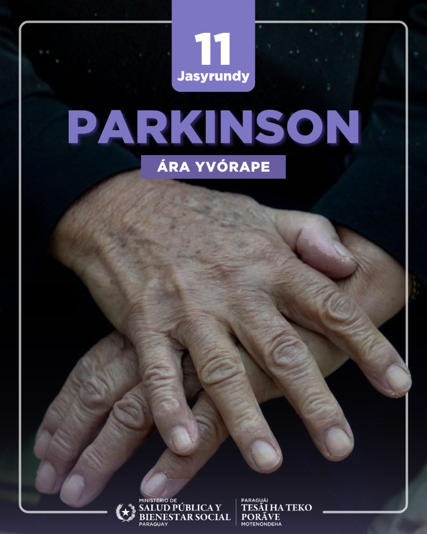 - Hoy se conmemora el "Parkinson Ára Yvórape", una enfermedad neurodegenerativa, de las más frecuentes después del Alzheimer. Se caracteriza por temblor de las extremidades en reposo, rigidez, lentitud en los movimientos, cambios en la expresión facial, posturales, cambios de la voz y problemas para deglutir.