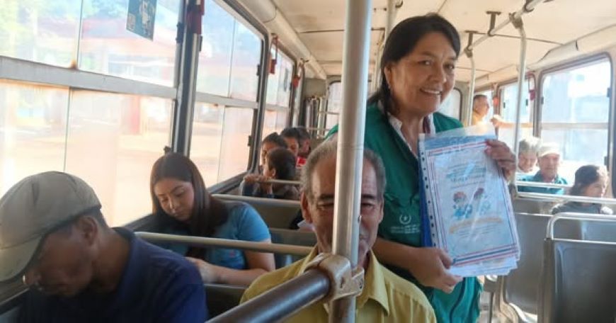 Con el objetivo de fortalecer la prevención de enfermedades evitables y fomentar prácticas de cuidado comunitario, el Hospital Distrital de Minga Guazú, dependiente de la X Región Sanitaria - Alto Paraná, a través de su departamento de Promoción de la Salud, organizó una jornada de orientación dirigida a los usuarios del transporte público local. Esta actividad forma parte del proyecto "Empresas comprometidas con la prevención y control de las arbovirosis" y acompaña la campaña de vacunación contra sarampión y rubéola (SPR). Durante la actividad, la Lic. Patrocinia Vera, a bordo de uno de los buses, destacó la importancia de aplicar una dosis adicional de la vacuna en niños y niñas de 1 a 5 años, señalando que esta medida fortalece las defensas en una etapa clave del desarrollo y reduce significativamente el riesgo de brotes. Además, brindó información sobre el esquema regular de vacunación, incluyendo horarios de atención y dosis según la edad, y exhortó a padres y encargados a mantener al día las libretas de vacunación. En el contexto epidemiológico actual, el equipo también recordó la importancia de prevenir criaderos de mosquitos en hogares y lugares de trabajo. Las recomendaciones incluyeron la limpieza frecuente de patios, el uso adecuado de repelentes y la identificación temprana de signos de alarma para acudir oportunamente a consulta médica. Durante la jornada se distribuyeron materiales educativos y afiches elaborados por el área de Promoción de la Salud.