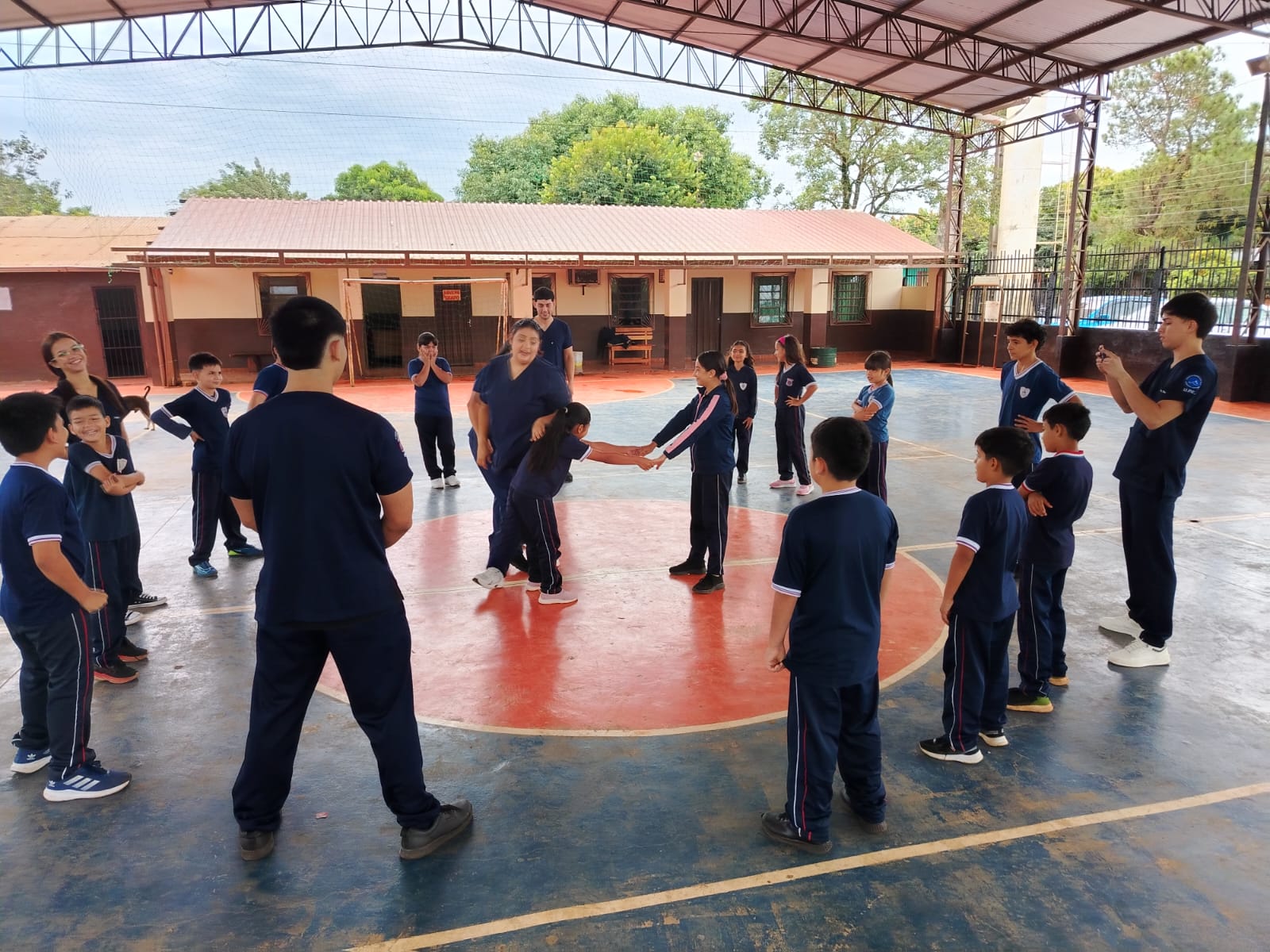 En el marco de la estrategia Escuela Saludable y con el objetivo de fomentar hábitos de vida activos y combatir el sedentarismo desde la infancia, referentes de Promoción de la Salud del Hospital Distrital de Hernandarias, dependiente de la X Región Sanitaria - Alto Paraná, llevaron a cabo la jornada denominada “Movimiento y recreación para una vida saludable” en la Escuela San Ramón. La actividad contó con la participación de 60 estudiantes del 4.°, 5.° y 6.° grado, quienes disfrutaron de una mañana dedicada integralmente al desarrollo físico y emocional a través del ejercicio guiado y dinámicas lúdicas. La actividad fue posible gracias a la articulación intersectorial efectiva, coordinada por el departamento de Promoción de la Salud del servicio de salud con el apoyo de la Universidad Privada del Este (UPE), sede Presidente Franco, a través de estudiantes de la carrera de Fisioterapia, quienes lideraron las estaciones de movimientos y juegos recreativos. La estrategia Escuela Saludable busca que las instituciones educativas sean espacios que protejan y potencien la salud de los alumnos. Al integrar el movimiento en la rutina escolar, se garantiza que el crecimiento de los niños sea armónico y equilibrado.